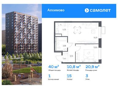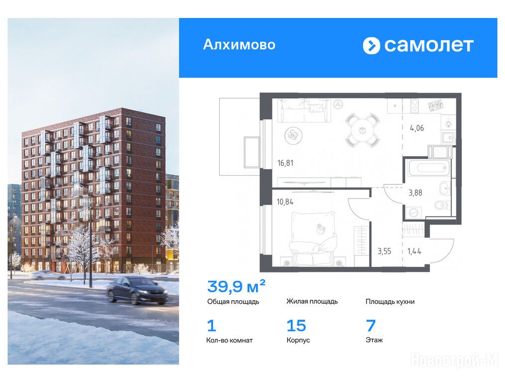 Продается однокомнатная квартира в новостройке ЖК «Алхимово» по адресу Москва, ТиНАО, Новомосковский АО, Рязановское С/П, пос. Рязановское, вблизи д. Алхимово, ЖК «Алхимово», корп. 15. Общая площадь квартиры - 39.9 кв. м. Тип проекта, по которому построен дом — Монолитно-кирпичный, компания-застройщик — Группа «Самолет», ООО СЗ «Самолет-Алхимово». Стоимость квартиры — 12 837 484 руб. Способы оплаты можно уточнить у продавца. Более подробная информация по телефону.