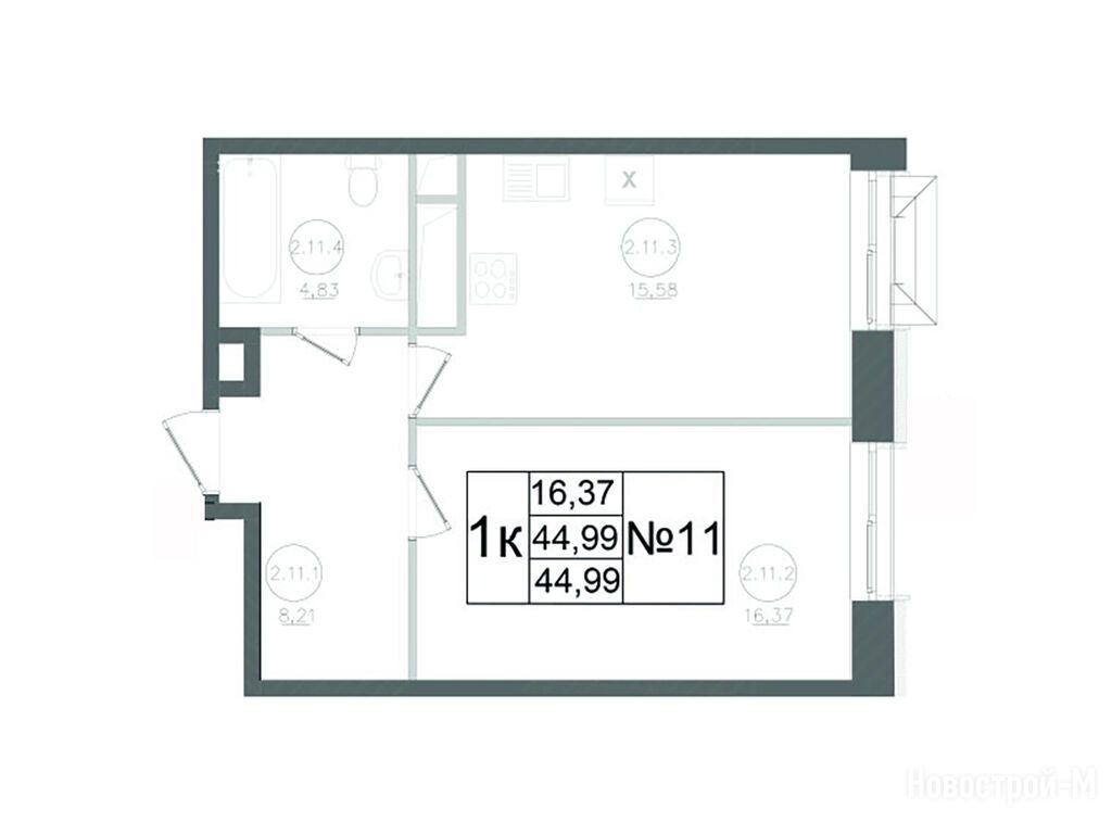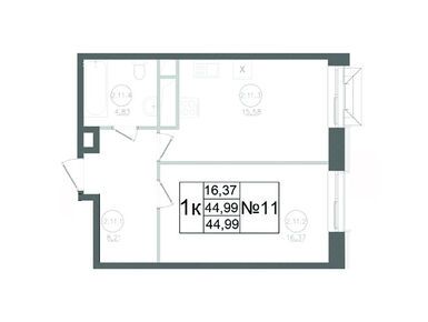 1-комн. квартира, 44.99 м2, 11 этаж