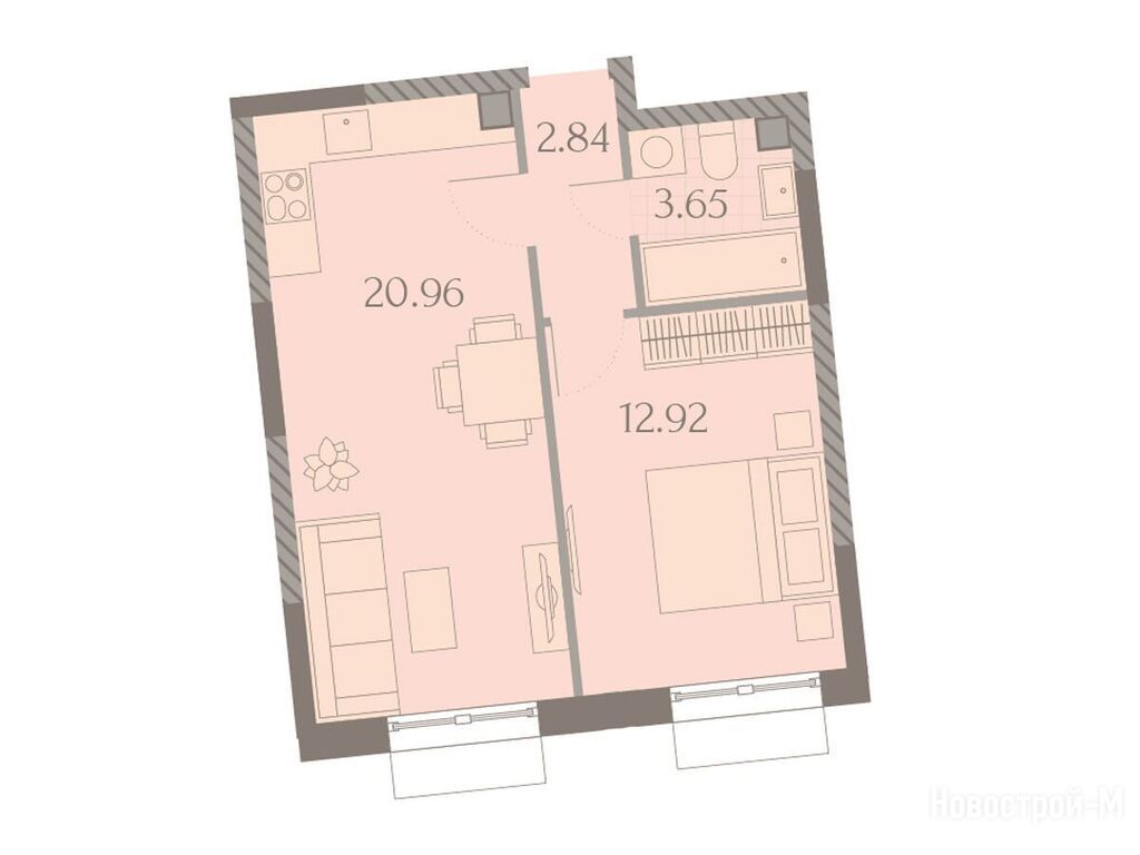 Выгодные условия по рассрочке от застройщика, поэтому и решились на покупку. Выбрали нормальную планировку, двушку на 66,5 кв. Самая оптимальная нам показалась из всех