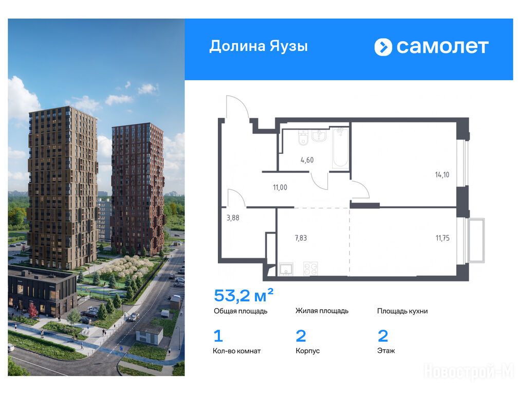 Продается однокомнатная квартира в новостройке ЖК «Долина Яузы» по адресу Московская область, Мытищи городской округ, Мытищи, мкр.20, ул. Трудовая корп. 2. Общая площадь квартиры - 53.2 кв. м. Тип проекта, по которому построен дом — Монолитно-кирпичный, компания-застройщик — ООО СЗ «Реновация-Мытищи», Группа «Самолет». Стоимость квартиры — 17 024 417 руб. Способы оплаты можно уточнить у продавца. Более подробная информация по телефону.
