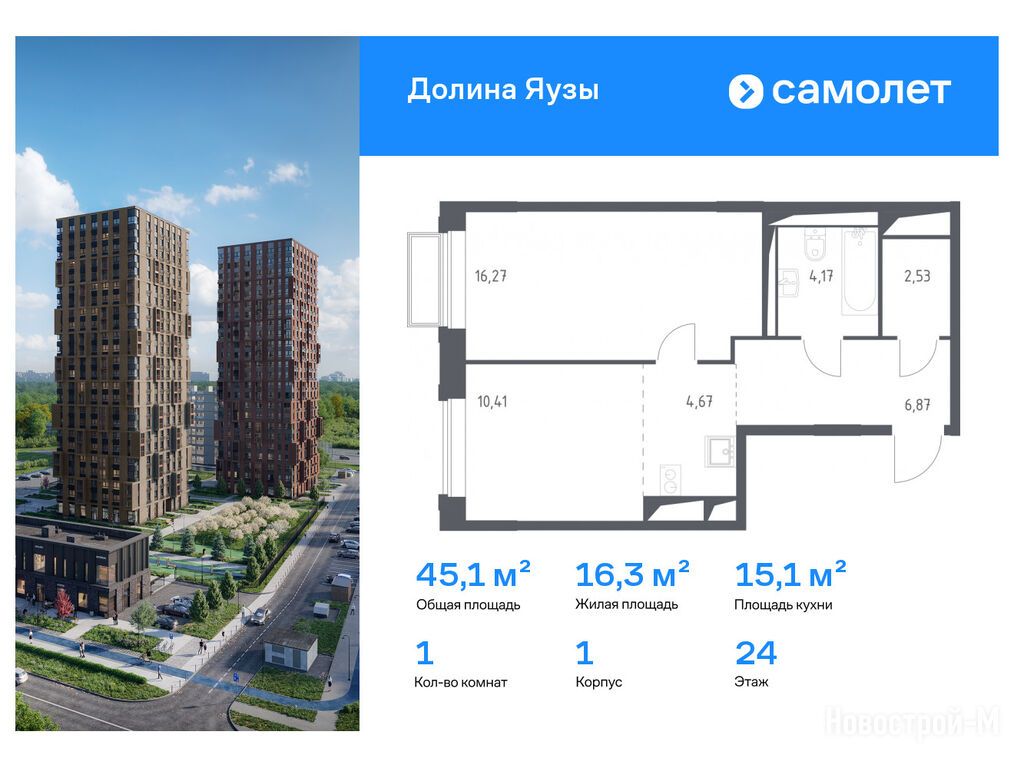 Продается однокомнатная квартира в новостройке ЖК «Долина Яузы» по адресу Московская область, Мытищи городской округ, Мытищи, мкр.20, ул. Трудовая корп. 1. Общая площадь квартиры - 45.1 кв. м. Тип проекта, по которому построен дом — Монолитно-кирпичный, компания-застройщик — ООО СЗ «Реновация-Мытищи», Группа «Самолет». Стоимость квартиры — 17 456 767 руб. Способы оплаты можно уточнить у продавца. Более подробная информация по телефону.