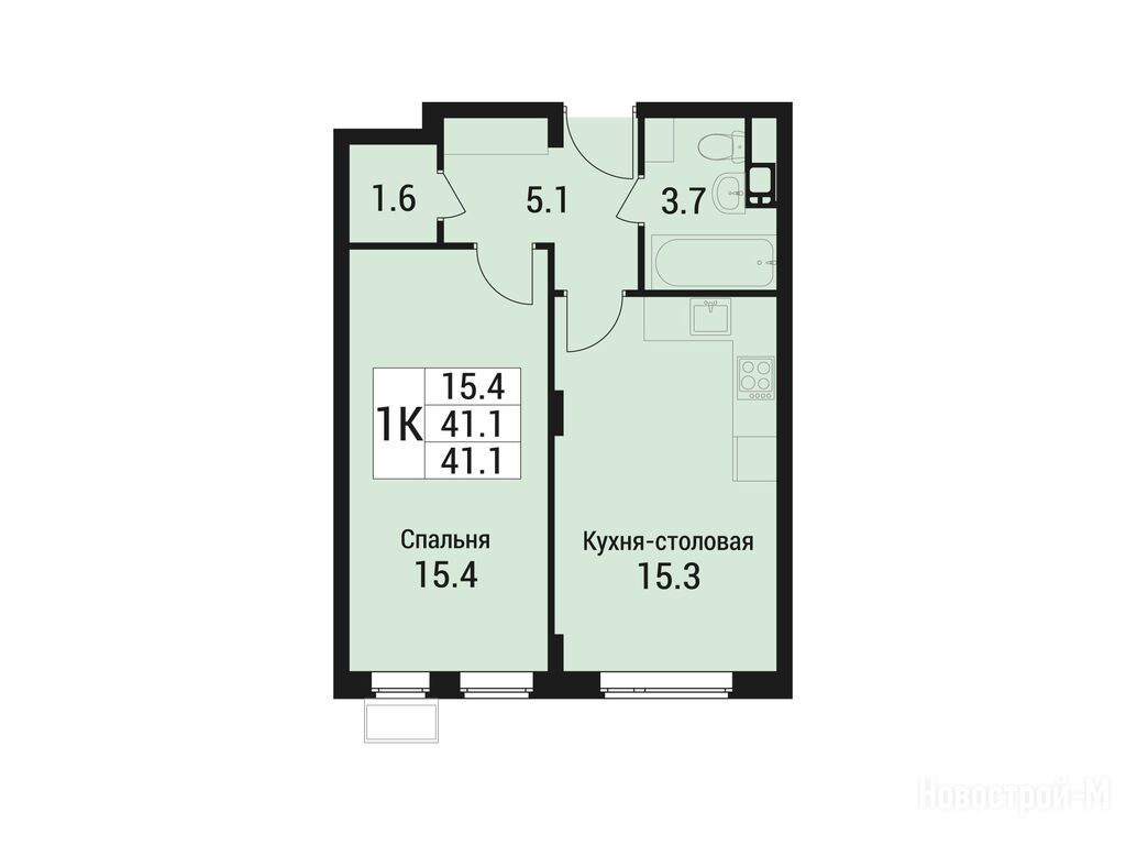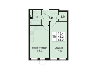 1-комн. квартира, 41.10 м2, 5 этаж