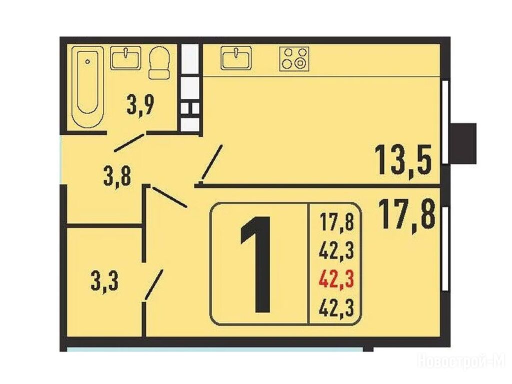 Данная квартира является лидером продаж среди однокомнатных квартир в ЖК «Фрунзенский» по данным Росреестра