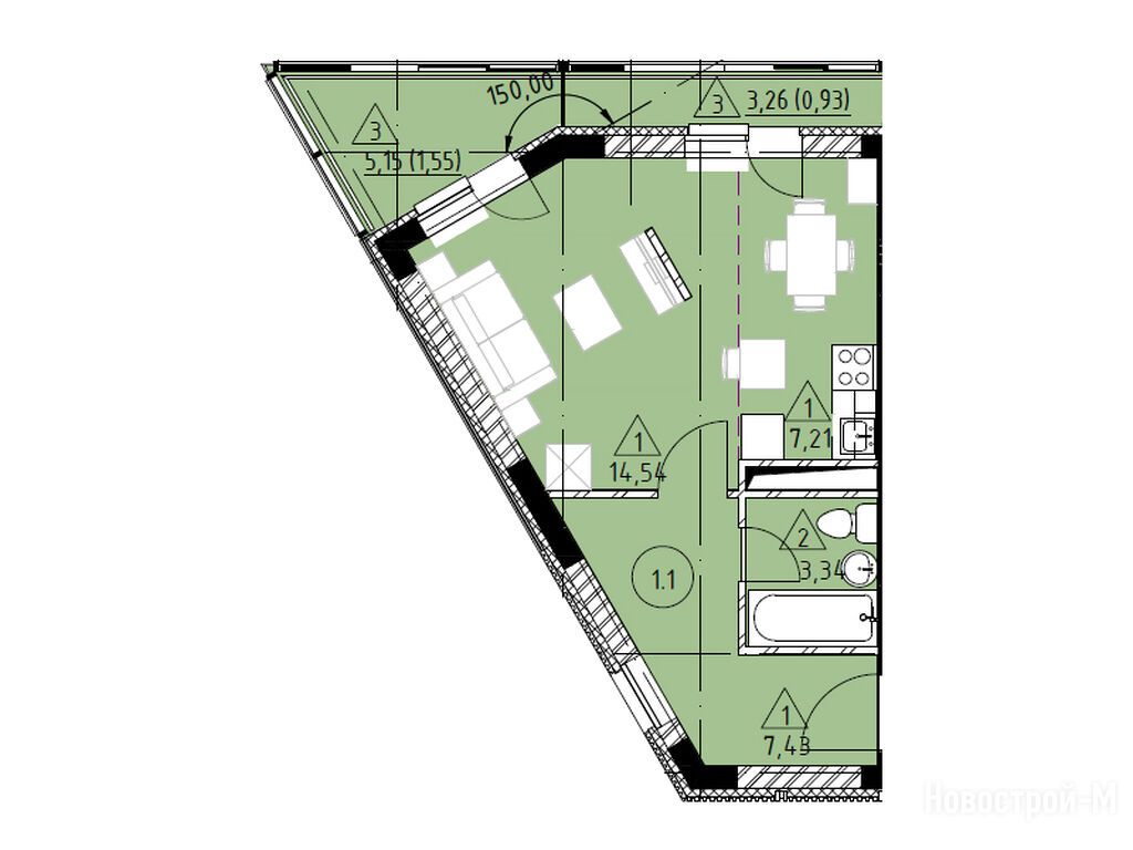 Расположение 1-комн. квартиры