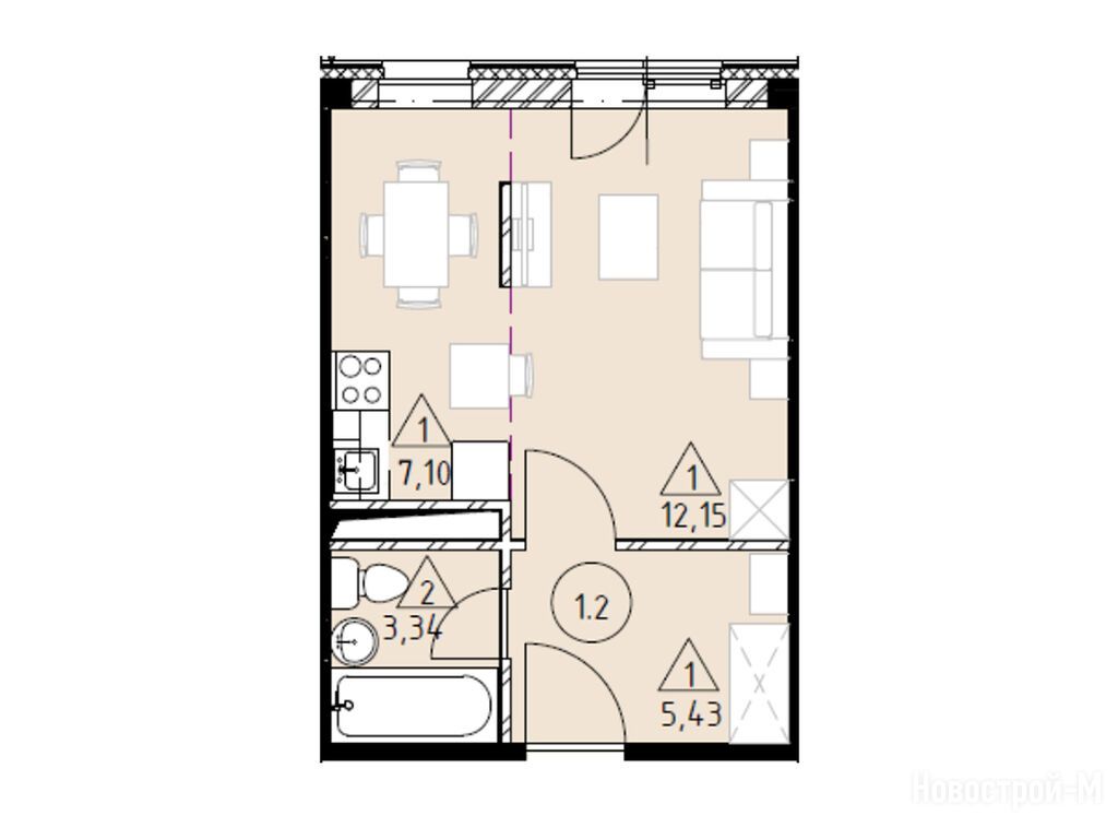 Данная квартира является лидером продаж среди однокомнатных квартир в ЖК «Горки Марусино» по данным Росреестра