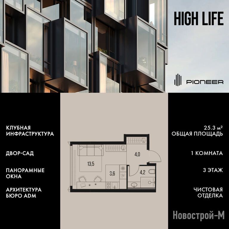 Продается однокомнатная квартира в новостройке ЖК High Life (Хай Лайф) по адресу Москва, ЮАО, Даниловский, ул. Летниковская, д.11/10с22. Общая площадь квартиры - 25.3 кв. м. Тип проекта, по которому построен дом — Монолит, компания-застройщик — ГК Пионер. Стоимость квартиры — 27 351 830 руб. Способы оплаты можно уточнить у продавца. Срок сдачи — 4 квартал 2027. Более подробная информация по телефону.