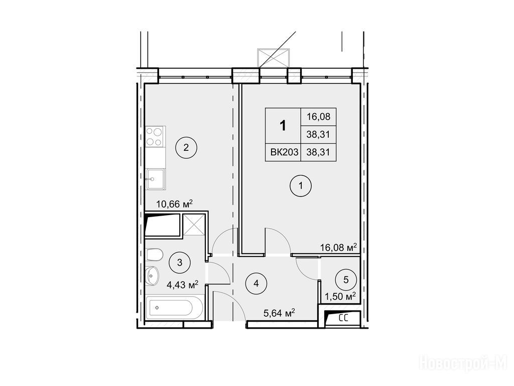 1-комн. квартира, 38.30 м2, 10 этаж