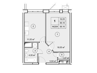 1-комн. квартира 38,30 м2 6 514 830