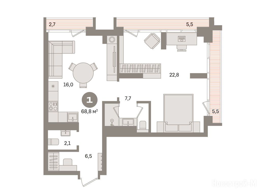 Проект действительно очень красивый - балконы и террасы просто отличные, здесь очень порадовало все! Но вот с планировками подкачали, крутых квартир не так много.