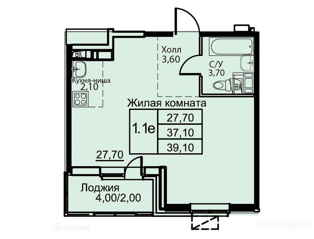 1-комн. квартира 39,10 м2 5 552 200