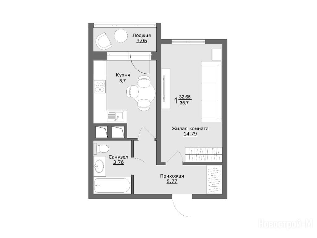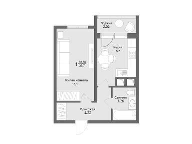 1-комн. квартира 32,72 м2 4 490 000