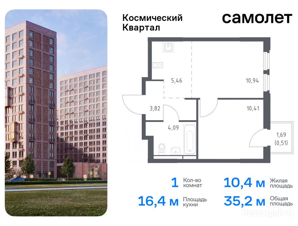 Продается однокомнатная квартира в новостройке ЖК «Космический квартал» по адресу Московская область, Королев городской округ, Королев, ул. Тихонравова, ул. Лесная, ул. Советская, д. 1. Общая площадь квартиры - 35.23 кв. м. Тип проекта, по которому построен дом — Монолит,Железобетон, компания-застройщик — Группа «Самолет», ООО СЗ Самолет-Королев. Стоимость квартиры — 10 012 893 руб. Способы оплаты можно уточнить у продавца. Срок сдачи — 4 квартал 2026. Более подробная информация по телефону.