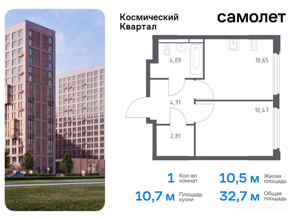 Продается однокомнатная квартира в новостройке ЖК «Космический квартал» по адресу Московская область, Королев городской округ, Королев, ул. Тихонравова, ул. Лесная, ул. Советская, д. 1. Общая площадь квартиры - 32.73 кв. м. Тип проекта, по которому построен дом — Монолит,Железобетон, компания-застройщик — Группа «Самолет», ООО СЗ Самолет-Королев. Стоимость квартиры — 8 701 030 руб. Способы оплаты можно уточнить у продавца. Срок сдачи — 4 квартал 2026. Более подробная информация по телефону.