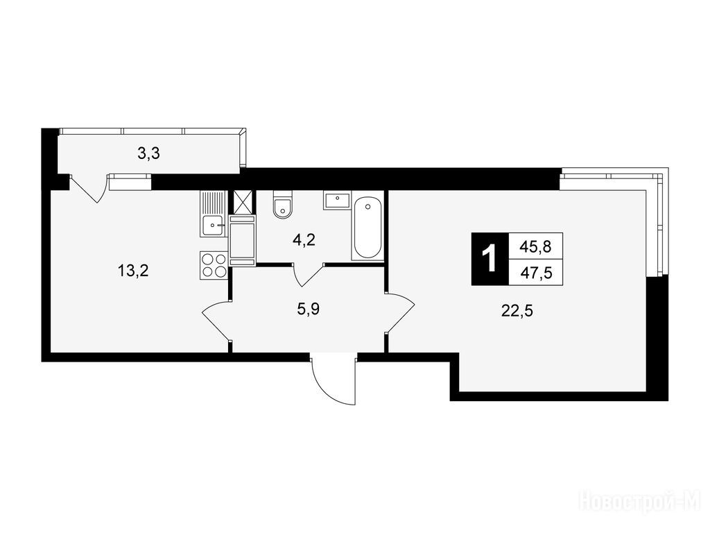 1-комн. квартира, 47.50 м2, 4 этаж