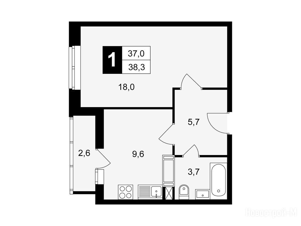 Данная квартира является лидером продаж среди однокомнатных квартир в ЖК «Красная горка» (Подольск) по данным Росреестра