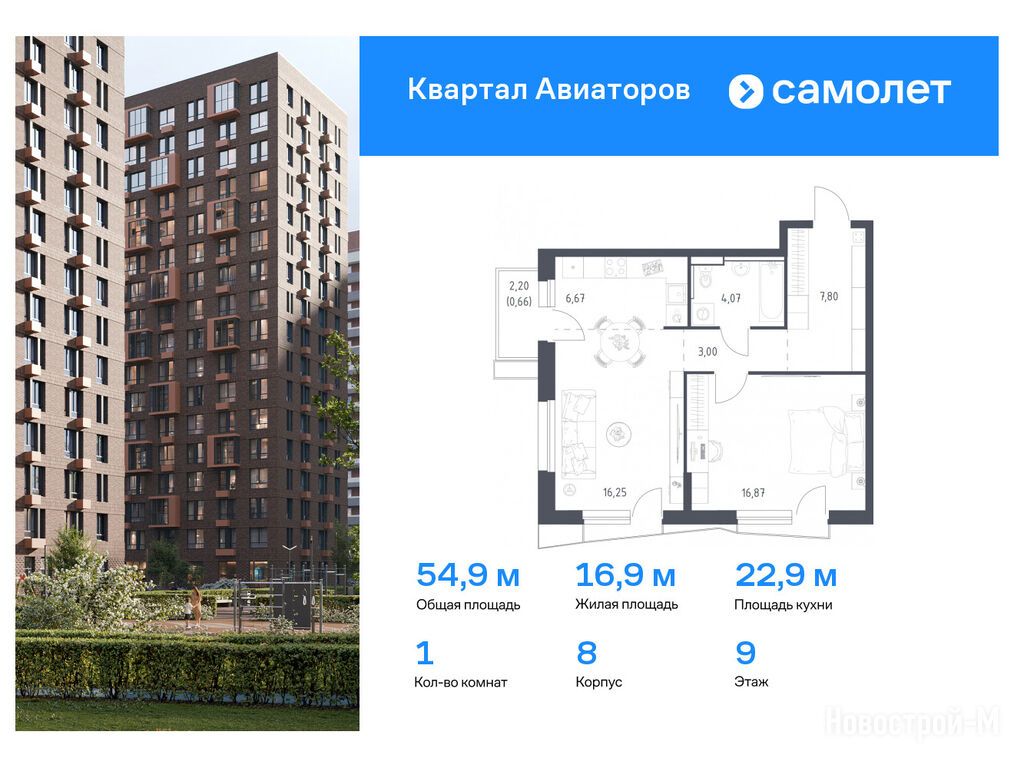 Продается однокомнатная квартира в новостройке ЖК «Квартал Авиаторов» по адресу Московская область, Балашиха городской округ, Балашиха, ул. Кожедуба, корп. 8. Общая площадь квартиры - 54.9 кв. м. Тип проекта, по которому построен дом — Монолитно-кирпичный, компания-застройщик — ООО СЗ «Реновация-Балашиха», Группа «Самолет». Стоимость квартиры — 14 645 290 руб. Способы оплаты можно уточнить у продавца. Более подробная информация по телефону.