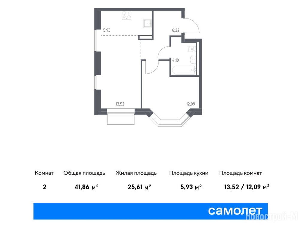 Продается однокомнатная квартира в новостройке ЖК «Квартал Домашний» по адресу Москва, ЮВАО, Марьино, ул. Донецкая, вл. 30, корп. 2 (3 очередь). Общая площадь квартиры - 41.86 кв. м. Тип проекта, по которому построен дом — Монолит, компания-застройщик — ООО СЗ «Самолет-Донецкая», Группа «Самолет». Стоимость квартиры — 22 566 560 руб. Способы оплаты можно уточнить у продавца. Срок сдачи — 4 квартал 2026. Более подробная информация по телефону.