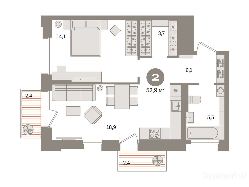 Данная квартира является лидером продаж среди однокомнатных квартир в ЖК «Квартал Герцена» по данным Росреестра