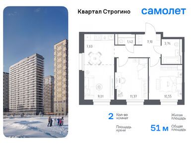 Продается однокомнатная квартира в новостройке ЖК «Квартал Строгино» по адресу Московская область, Красногорск городской округ, Красногорск, ЖК «Квартал Строгино», корп.2. Общая площадь квартиры - 49.24 кв. м. Тип проекта, по которому построен дом — Монолитно-кирпичный, компания-застройщик — ООО СЗ «Самолет-Строгино Парк», Группа «Самолет». Стоимость квартиры — 20 513 910 руб. Способы оплаты можно уточнить у продавца. Срок сдачи — 2 квартал 2026. Более подробная информация по телефону.