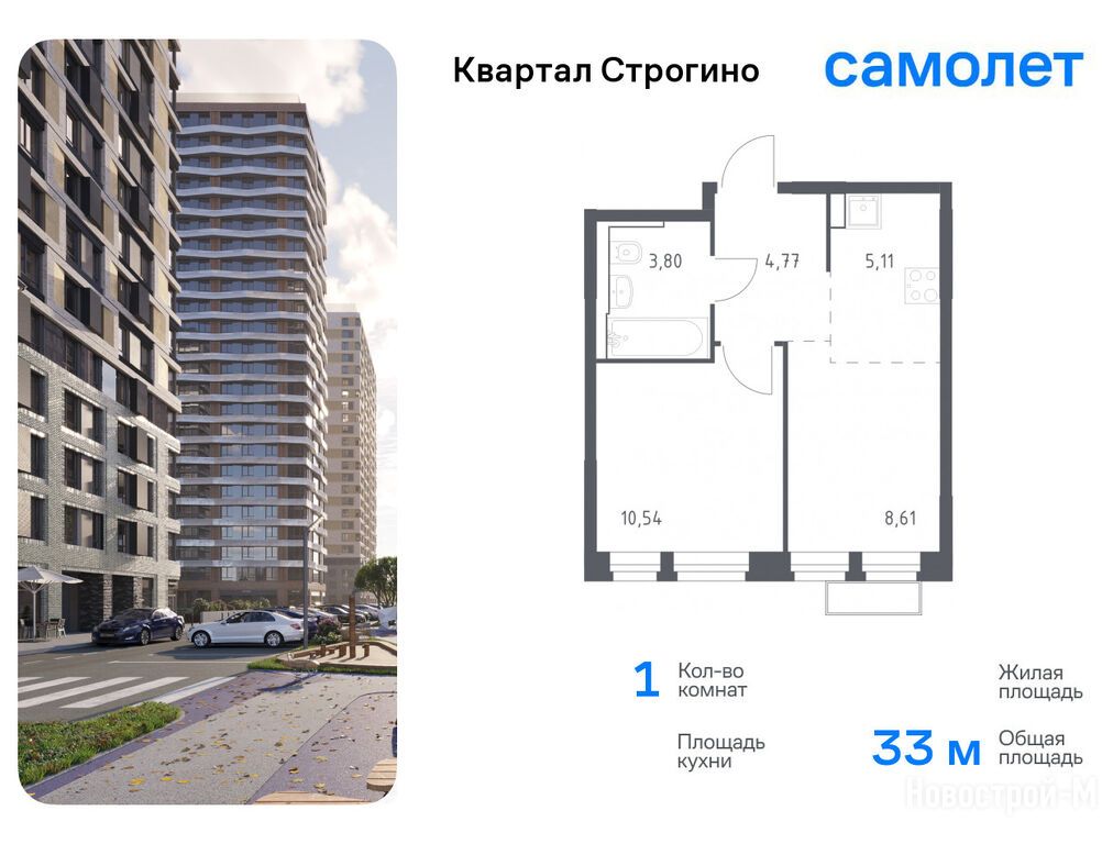 Продается однокомнатная квартира в новостройке ЖК «Квартал Строгино» по адресу Московская область, Красногорск городской округ, Красногорск, ЖК «Квартал Строгино», корп.2. Общая площадь квартиры - 33.01 кв. м. Тип проекта, по которому построен дом — Монолитно-кирпичный, компания-застройщик — ООО СЗ «Самолет-Строгино Парк», Группа «Самолет». Стоимость квартиры — 14 939 633 руб. Способы оплаты можно уточнить у продавца. Срок сдачи — 2 квартал 2026. Более подробная информация по телефону.