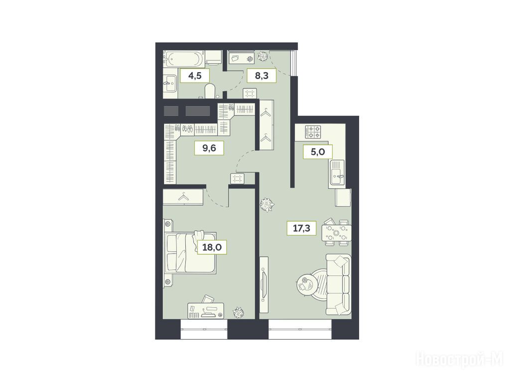 Ищем двухкомнатную квартиру для родителей, а тут они от 60 квадратов, приятно удивлены простором, плюс высокие потолки, интересная, необычная форма комнат, бизнес класс новостройки, скоро сдача, думаю, что остановимся на Лайме