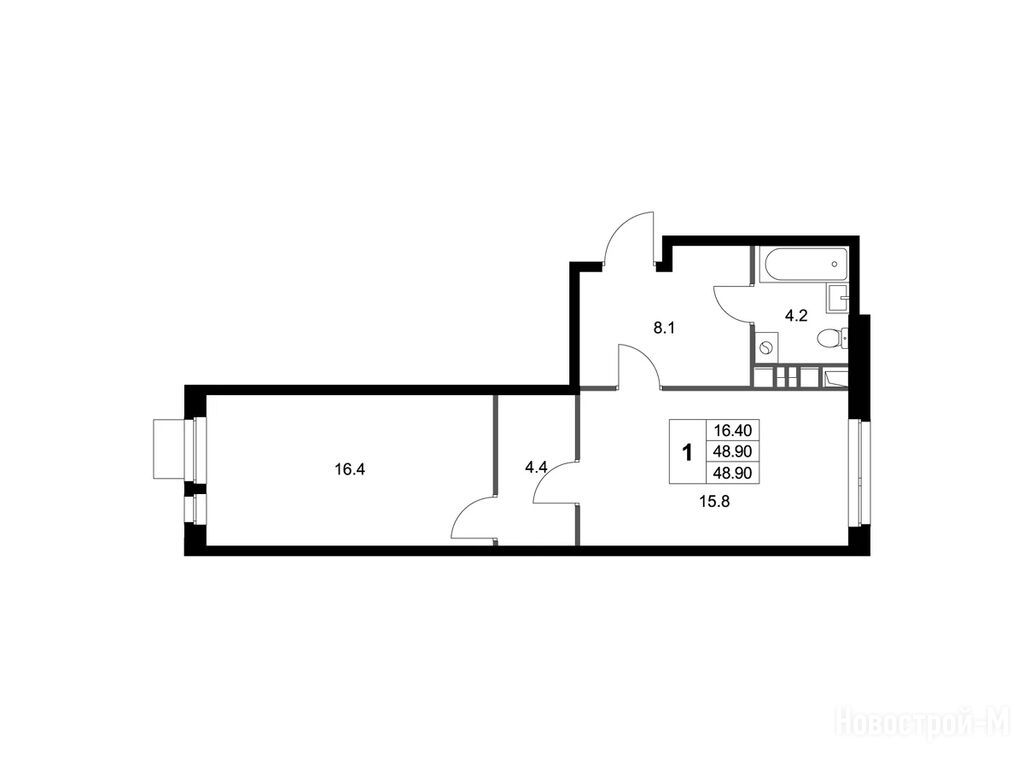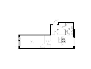 1-комн. квартира, 48.90 м2, 3 этаж