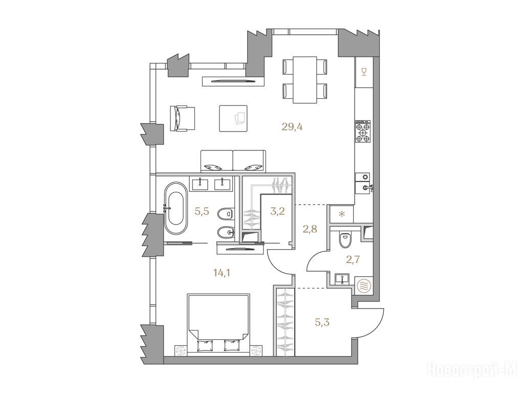 1. Большой пул самых востребованных семейных квартир с двумя-тремя спальнями.