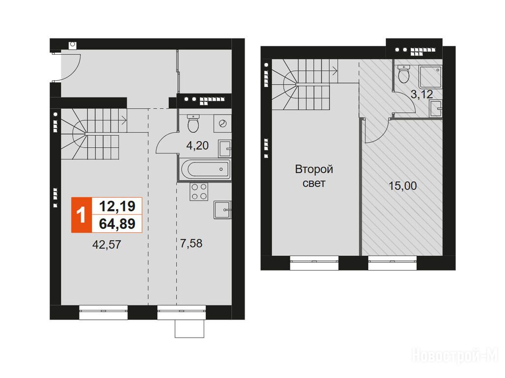1-комн. квартира, 64.89 м2, 3 этаж