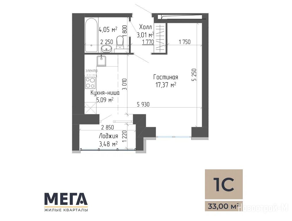 Расположение 1-комн. квартиры
