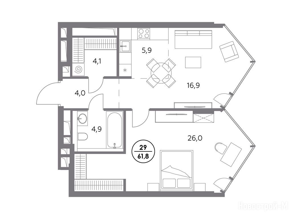 Выбрали квартиру в более корпусе на 7 этажей с мастер-спальней. Никогда не понимал этих любителей верхотуры и 30ых этажей. Хорошо, есть новые проекты с вменяемой этажностью. Вид у нас во двор, само место тихое, то что надо,