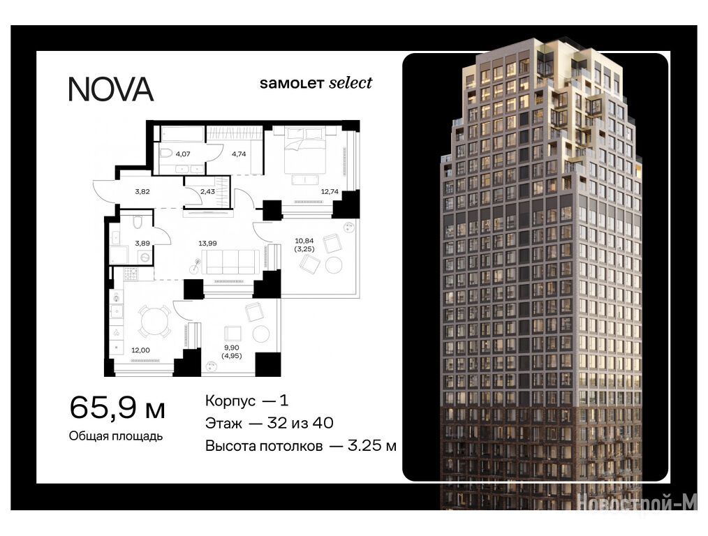 Продается однокомнатная квартира в новостройке ЖК NOVA (Нова) по адресу Москва, ЗАО, Раменки, ул. Братьев Фонченко, вл. 19. Общая площадь квартиры - 65.88 кв. м. Тип проекта, по которому построен дом — Монолитно-кирпичный, компания-застройщик — Группа «Самолет», ООО СЗ «Сетунь АЛГ». Стоимость квартиры — 73 398 819 руб. Способы оплаты можно уточнить у продавца. Срок сдачи — 2 квартал 2029. Более подробная информация по телефону.