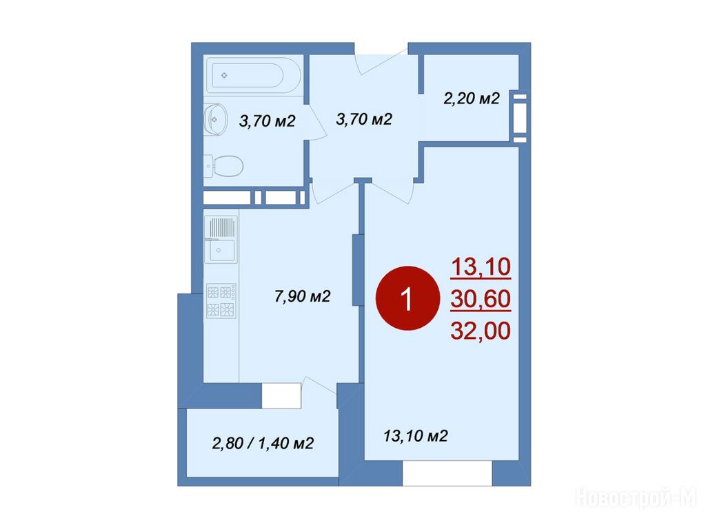 1-комн. квартира 32,00 м2 4 955 040