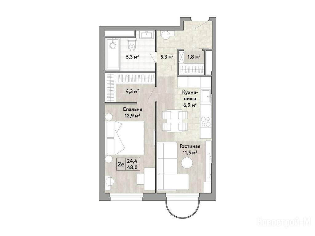 Данная квартира является лидером продаж среди однокомнатных квартир в ЖК «Новые Смыслы» по данным Росреестра