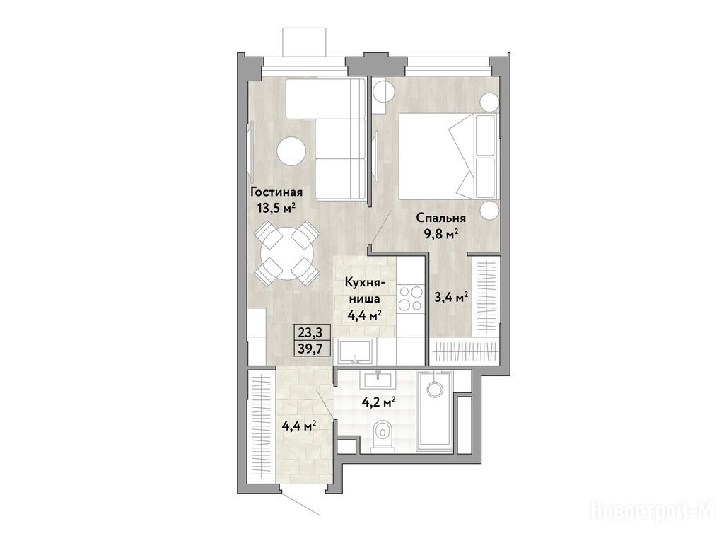 1-комн. квартира 39,70 м2 16 693 850