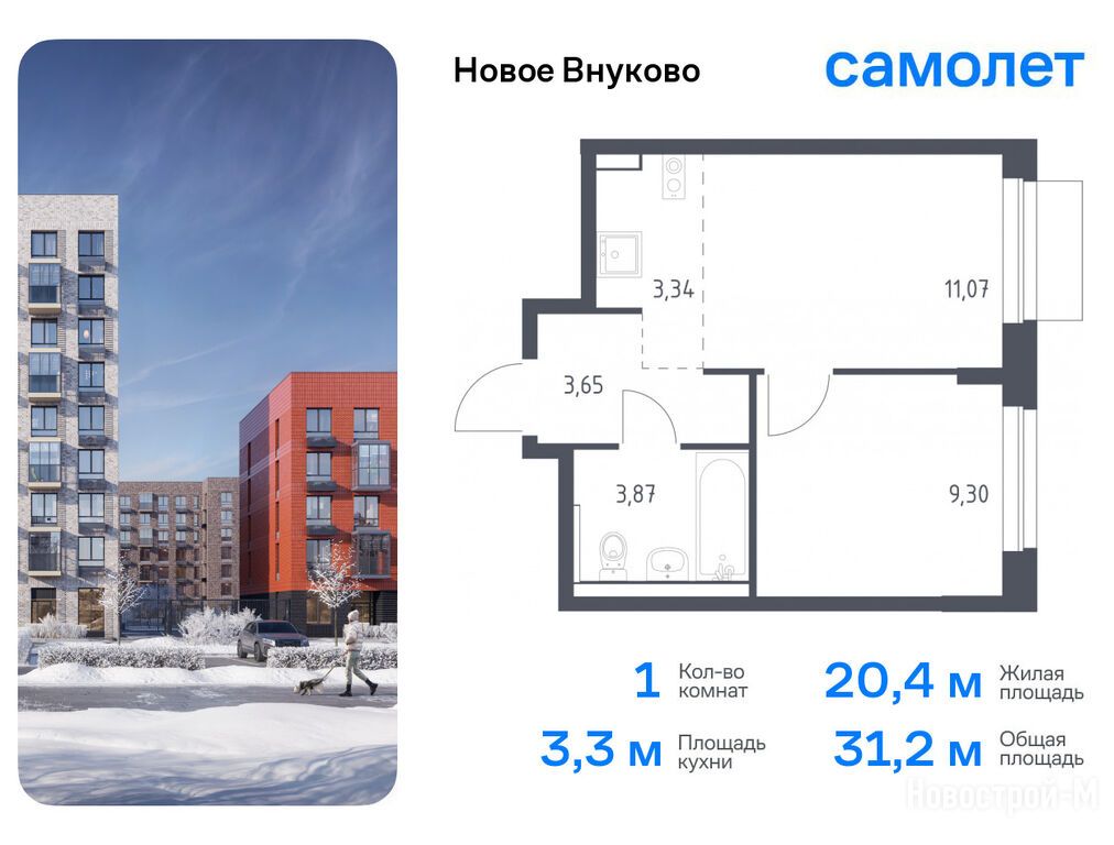 Продается однокомнатная квартира в новостройке ЖК «Новое Внуково» по адресу Москва, ТиНАО, Новомосковский АО, Кокошкино С/П, Кокошкино пос., д. Санино, ул. Аэростатная, корп. 30. Общая площадь квартиры - 31.23 кв. м. Тип проекта, по которому построен дом — Монолитно-кирпичный, компания-застройщик — ООО СЗ «Санино 1», Группа «Самолет». Стоимость квартиры — 9 309 444 руб. Способы оплаты можно уточнить у продавца. Срок сдачи — 4 квартал 2025. Более подробная информация по телефону.