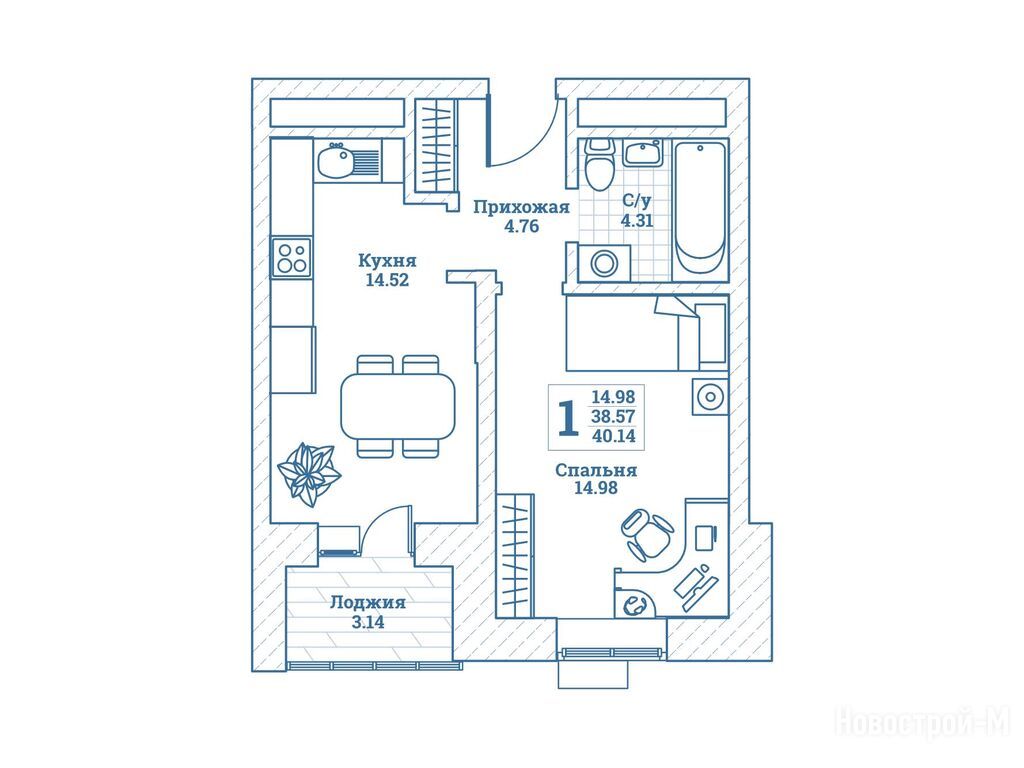 Данная квартира является лидером продаж среди однокомнатных квартир в ЖК «Новоград Монино» по данным Росреестра