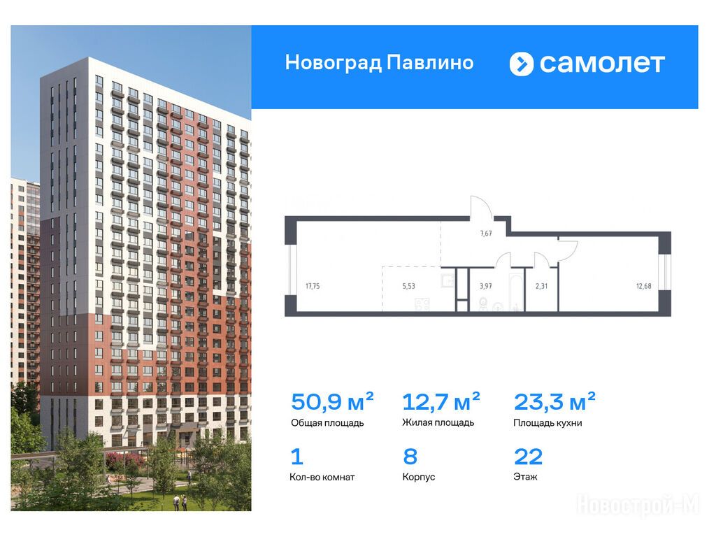 Продается однокомнатная квартира в новостройке ЖК «Новоград Павлино» по адресу Московская область, Балашиха городской округ, Балашиха, ул. Романычева, д. 2. Общая площадь квартиры - 50.9 кв. м. Тип проекта, по которому построен дом — Монолитно-кирпичный, компания-застройщик — Группа «Самолет», ООО СЗ «МИЦ-Инвестрой». Стоимость квартиры — 10 430 479 руб. Способы оплаты можно уточнить у продавца. Более подробная информация по телефону.