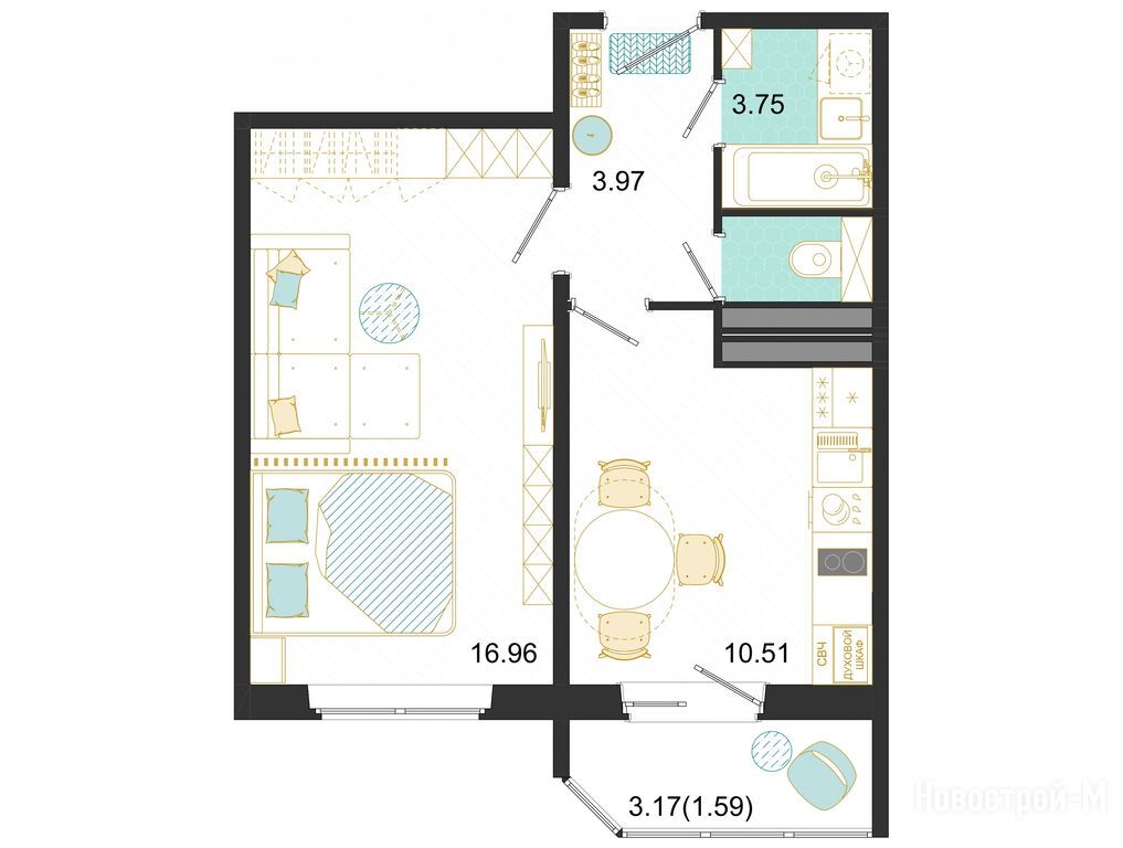 Расположение 1-комн. квартиры
