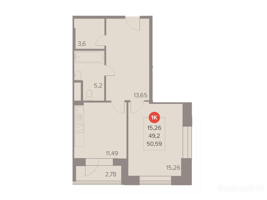 1-комн. квартира 50,59 м2 13 467 058