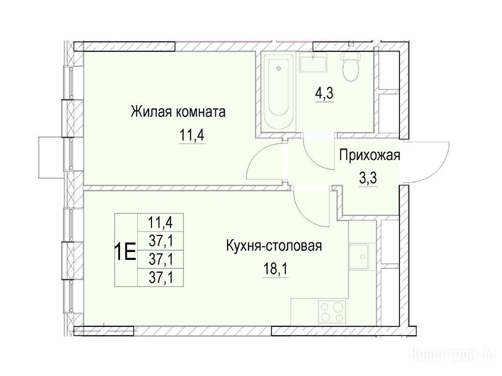1-комн. квартира, 37.10 м2, 10 этаж