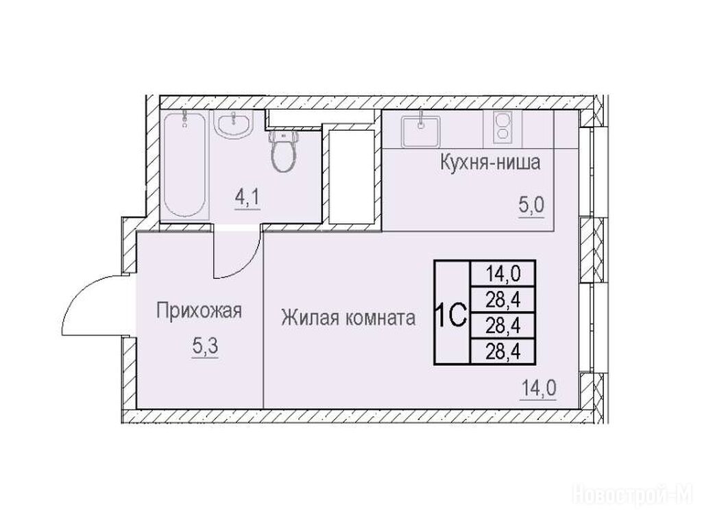 1-комн. квартира 28,40 м2 7 384 000