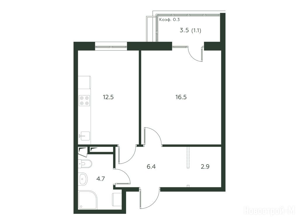 1-комн. квартира 34,90 м2 10 807 863