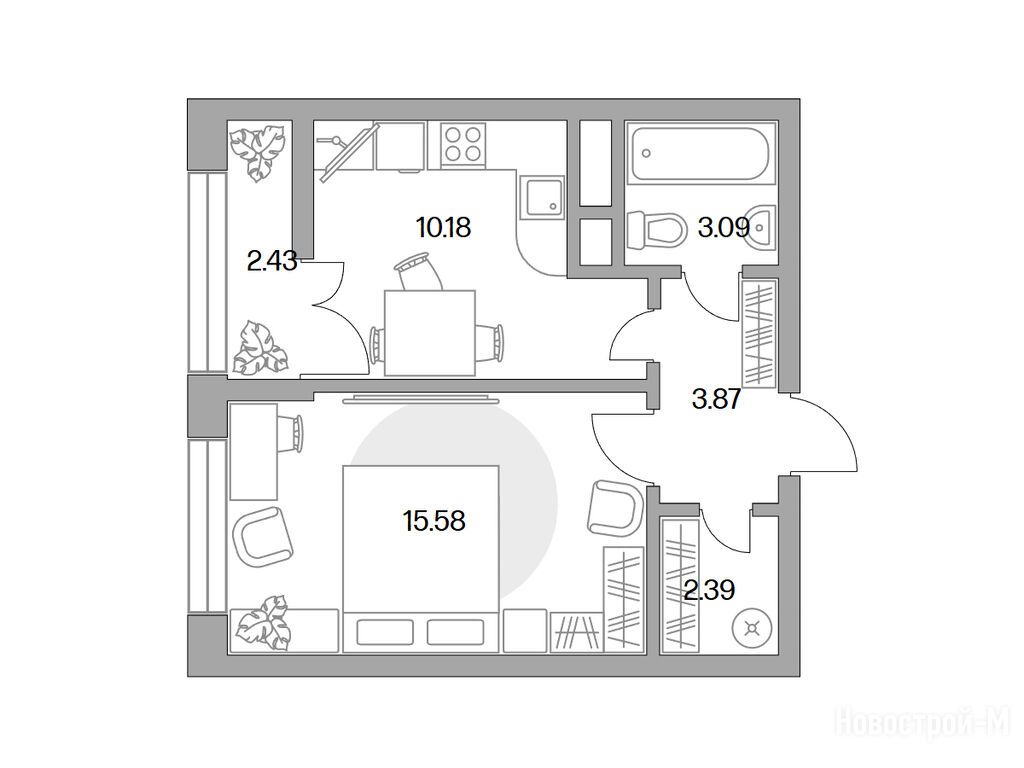 Данная квартира является лидером продаж среди однокомнатных квартир в ЖК «Пехра» по данным Росреестра