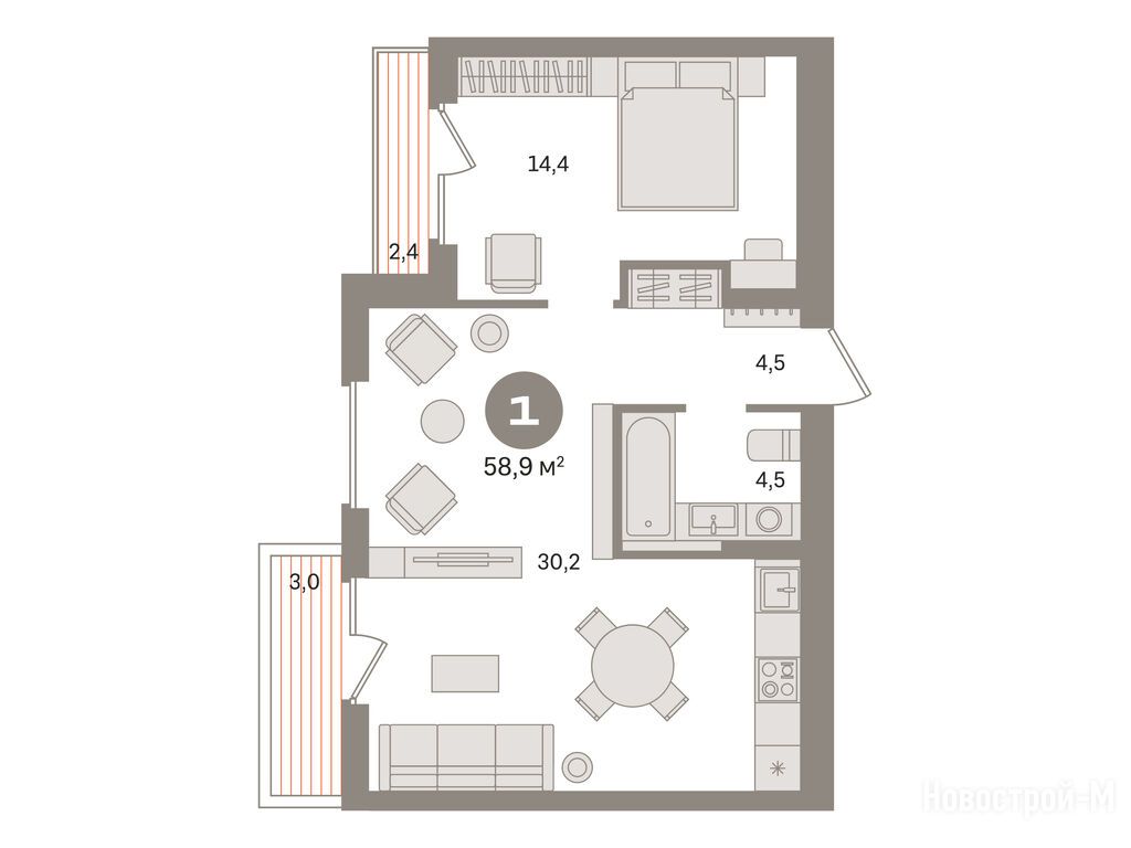 Продается однокомнатная квартира в новостройке ЖК «Первый квартал» по адресу Московская область, Ленинский городской округ, Горки Ленинские Г/П, Сапроново деревня, ул. Калиновая, корп. 9. Общая площадь квартиры - 58.9 кв. м. Тип проекта, по которому построен дом — Монолитно-кирпичный, компания-застройщик — Брусника, Третий квартал, ООО Брусника. Стоимость квартиры — 11 460 000 руб. Способы оплаты можно уточнить у продавца. Срок сдачи — 4 квартал 2027. Более подробная информация по телефону.