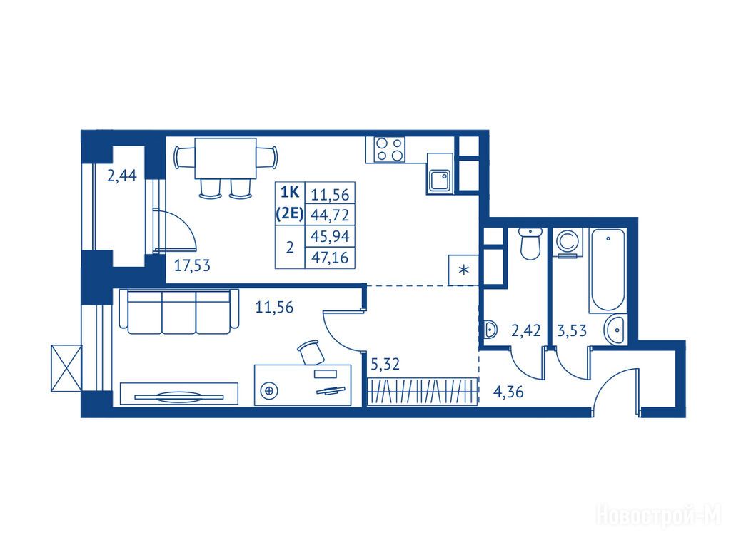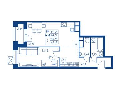 Продается однокомнатная квартира в новостройке ЖК «Поколение Первых» по адресу Московская область, Королев городской округ, Королев, ул. Калининградская, корп. 2. Общая площадь квартиры - 44.72 кв. м. Тип проекта, по которому построен дом — Монолитно-кирпичный, компания-застройщик — Профи-Инвест, ООО СЗ Профи-Королев. Стоимость квартиры — 11 001 120 руб. Способы оплаты можно уточнить у продавца. Срок сдачи — 2 квартал 2028. Более подробная информация по телефону.