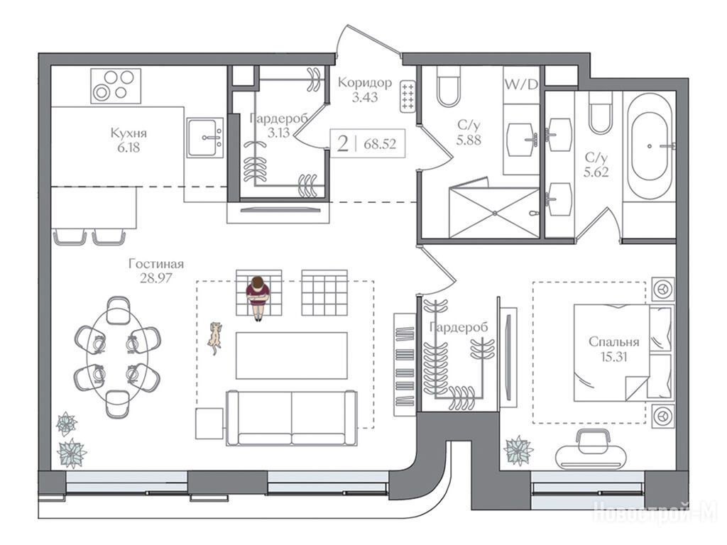 Рядом несколько парков, во дворе будет сквер с тренажерами и развлечениями для детей. Метро недалеко. Современная архитектура - тоже хорошо. Планировки продуманные, можно разместиться даже в небольших вполне комфортно