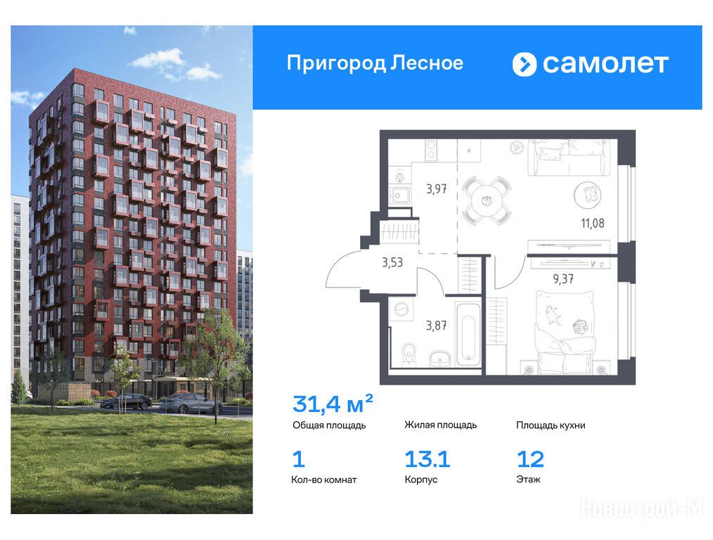 Продается однокомнатная квартира в новостройке ЖК «Пригород Лесное» по адресу Московская область, Ленинский городской округ, Молоковское С/П, Мисайлово деревня, д. Мисайлово, корпус 13.1. Общая площадь квартиры - 31.4 кв. м. Тип проекта, по которому построен дом — Монолитно-кирпичный, компания-застройщик — ООО «СЗ «Пригород Лесное», Группа «Самолет». Стоимость квартиры — 11 723 079 руб. Способы оплаты можно уточнить у продавца. Более подробная информация по телефону.
