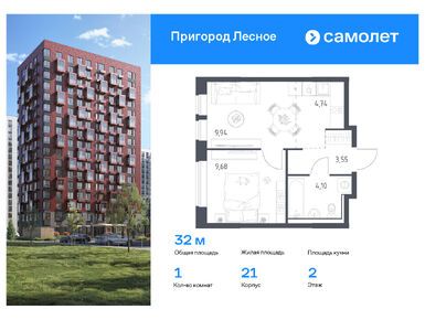Продается однокомнатная квартира в новостройке ЖК «Пригород Лесное» по адресу Московская область, Ленинский городской округ, Молоковское С/П, Мисайлово деревня, ул. Молодежный б-р, д. 3. Общая площадь квартиры - 31.87 кв. м. Тип проекта, по которому построен дом — Монолитно-кирпичный, компания-застройщик — ООО «СЗ «Пригород Лесное», Группа «Самолет». Стоимость квартиры — 8 281 323 руб. Способы оплаты можно уточнить у продавца. Более подробная информация по телефону.