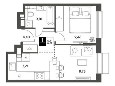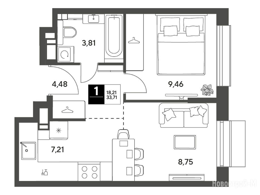 Данная квартира является лидером продаж среди однокомнатных квартир в ЖК «Публицист» по данным Росреестра