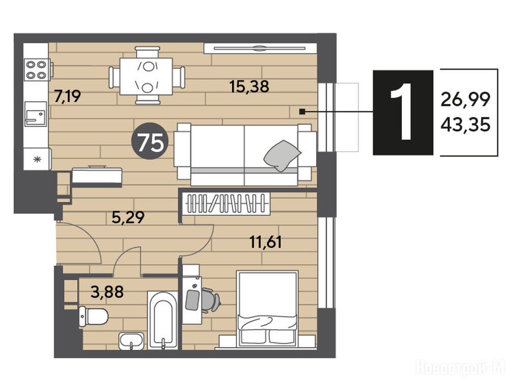 Продается однокомнатная квартира в новостройке ЖК «Публицист» по адресу Московская область, Пушкинский район, Пушкино, ул. Зеленая Роща, корп. 10. Общая площадь квартиры - 43.35 кв. м. Тип проекта, по которому построен дом — Монолитно-кирпичный, компания-застройщик — DOGMA, ООО СЗ Ниго-Холдинг. Стоимость квартиры — 7 062 235 руб. Способы оплаты можно уточнить у продавца. Срок сдачи — 1 квартал 2026. Более подробная информация по телефону.